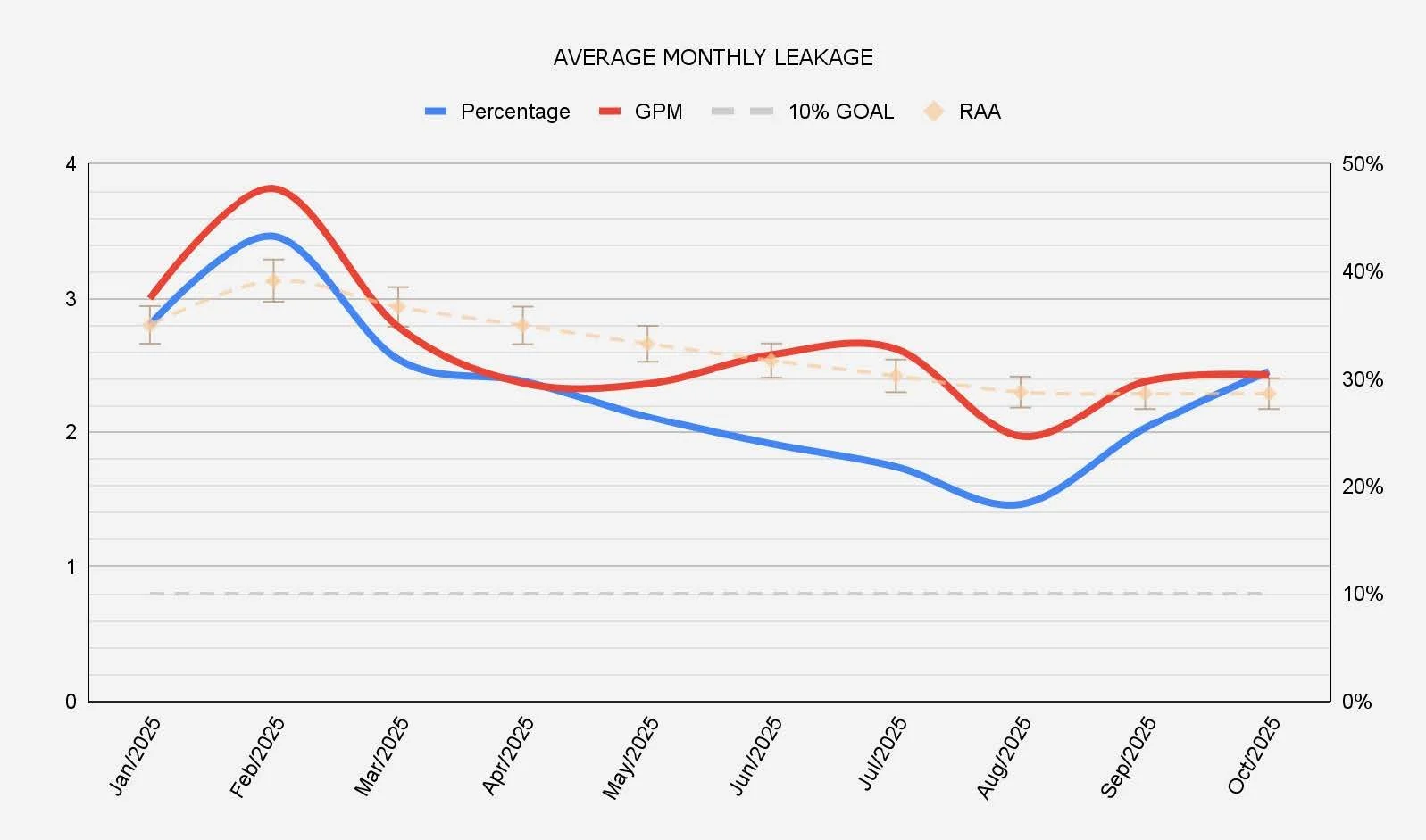 Percentage of loss 30.7% Average gallon per minute loss 2.4