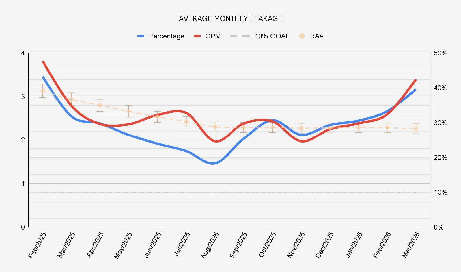 Percentage of loss 39.64% Average gallon per minute loss 3.40